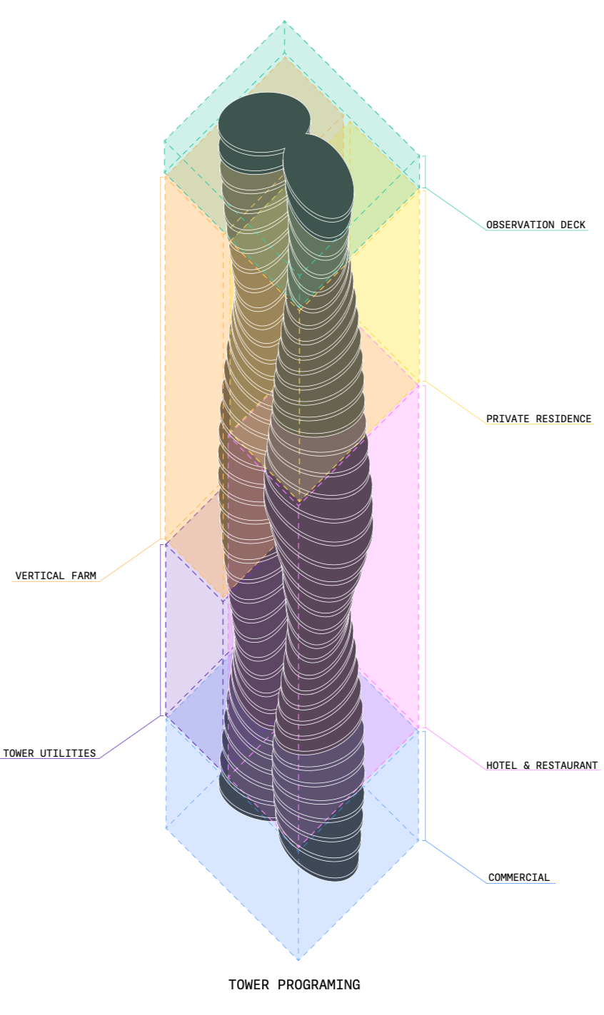 Expanding on the capabilities of AWG’s (atmospheric water generators) developed by SPARK IP and MIT Researchers, we have set out to design a high-rise building capable of generating water and food in the heart of metropolitan Dubai. Rethinking the value of urban space, through sustainable technologies and techniques.
